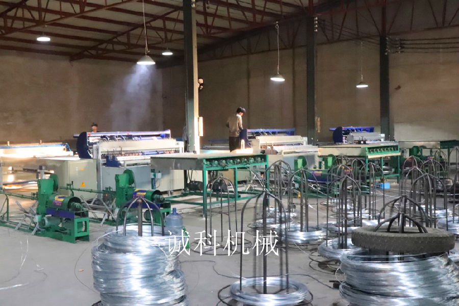 下面誠科小編為你介紹一下全自動焊網機盤絲入料生產線吧,包括焊網機,剪網裝置,徑絲調直裝置,放絲盤,以及緯絲調直機。
